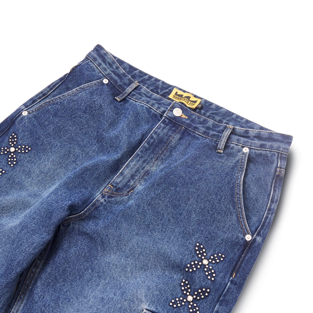 " 가공된 원석과 데님 건빵 바지 "