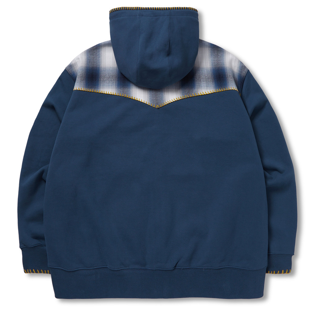 Blanket Stitch Check Hoodie Zip-Up (DARK BLUE)