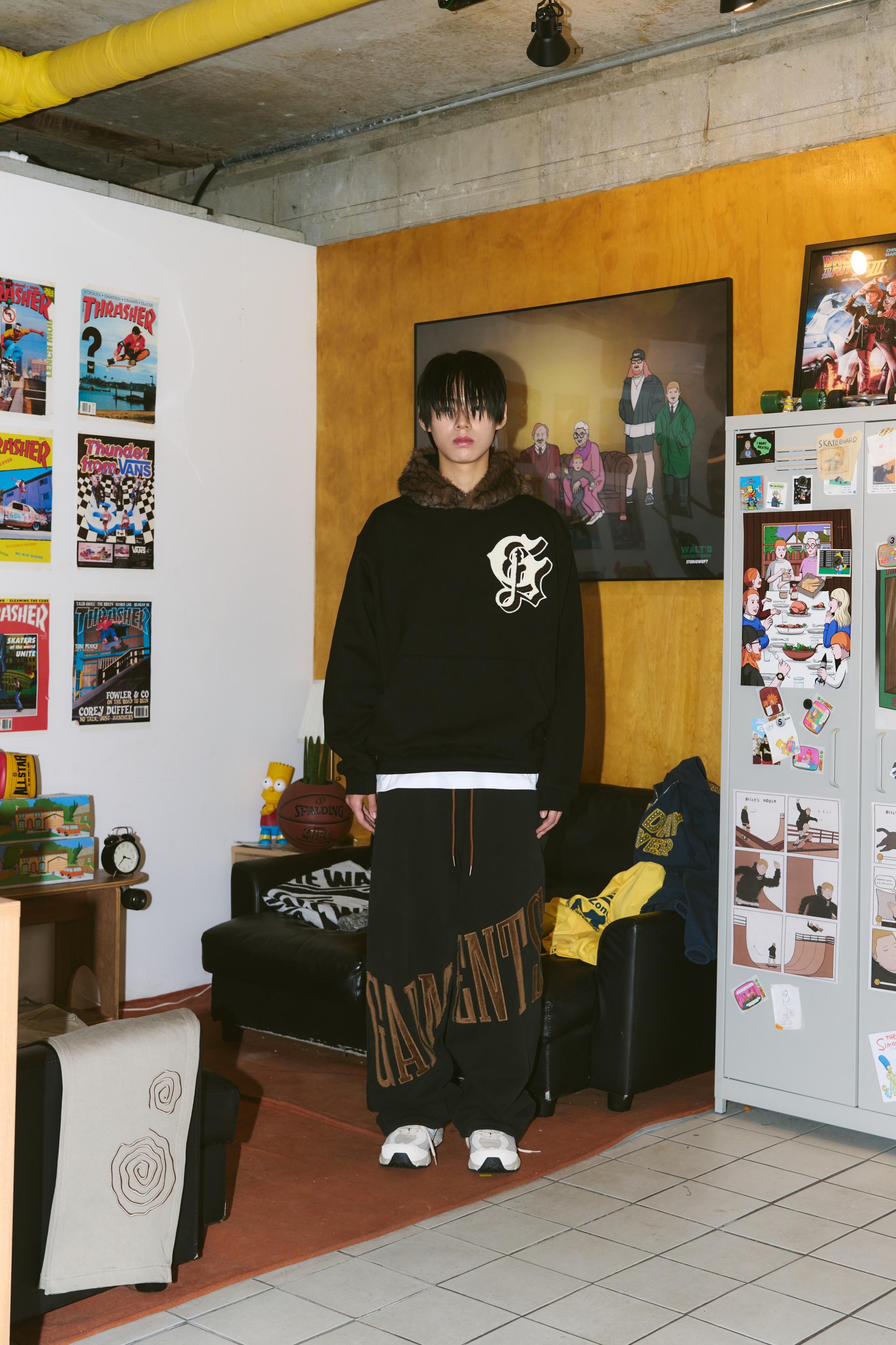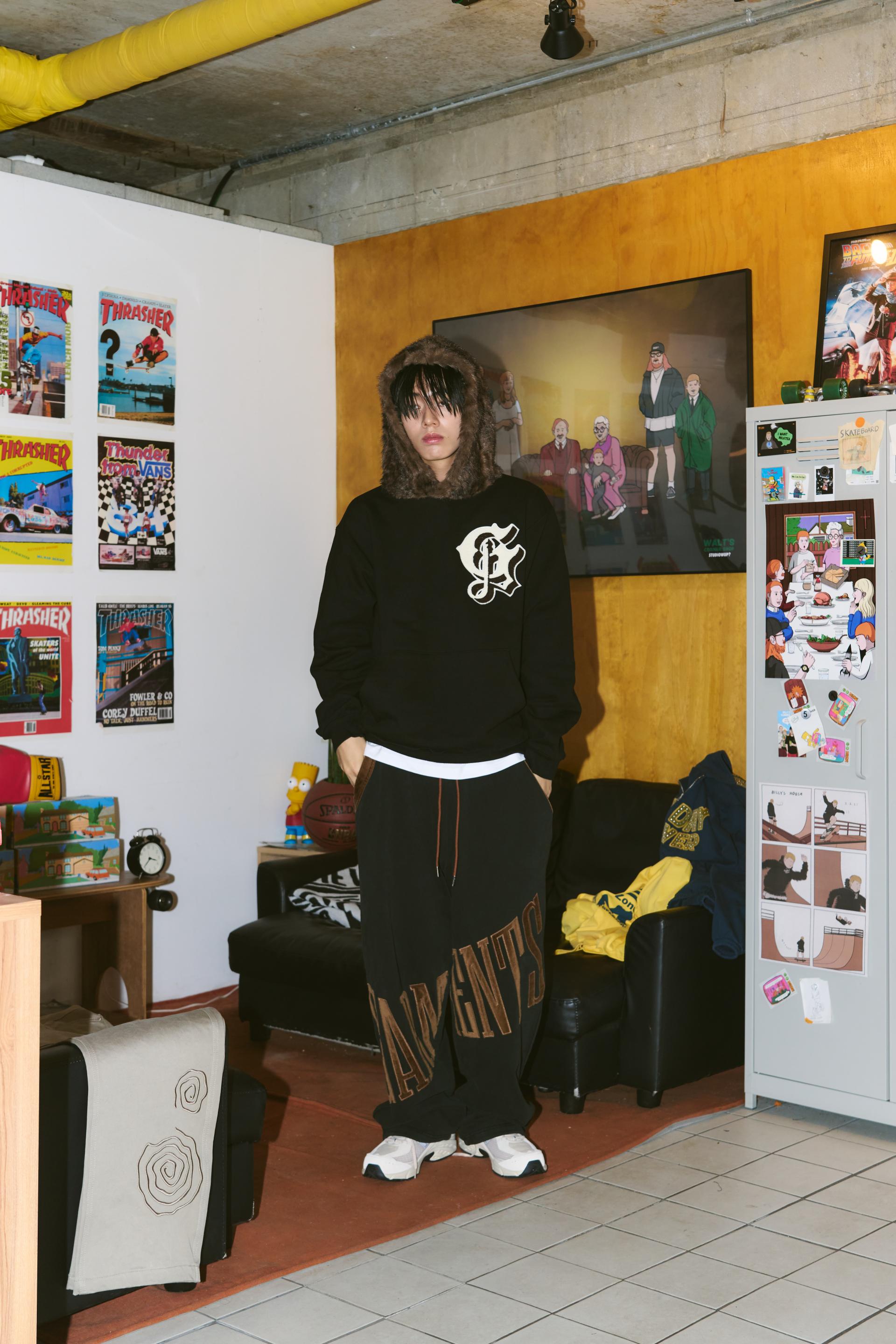 Old English Fur Hoodie (BLACK)
