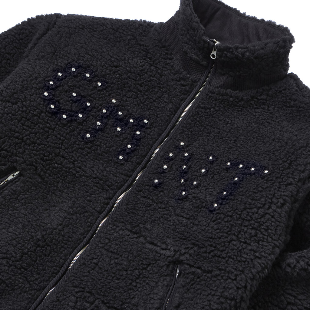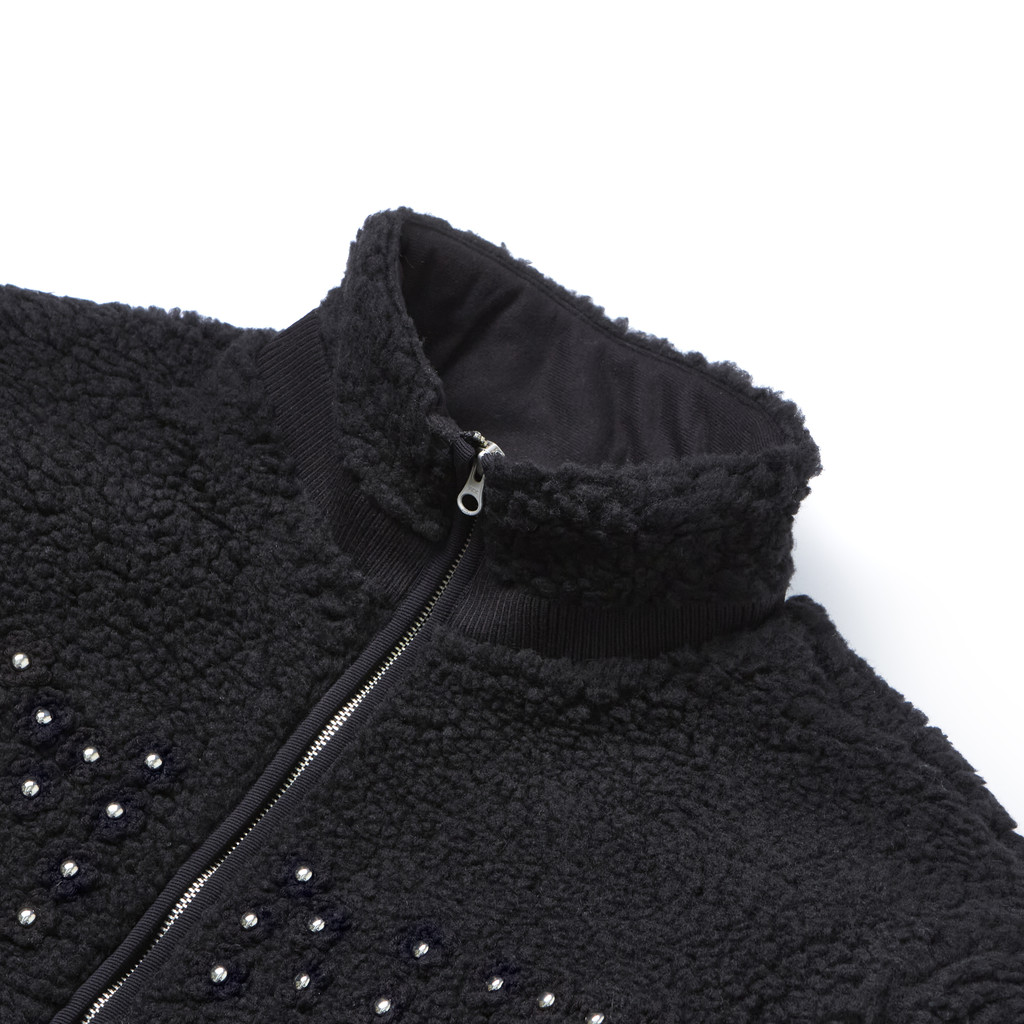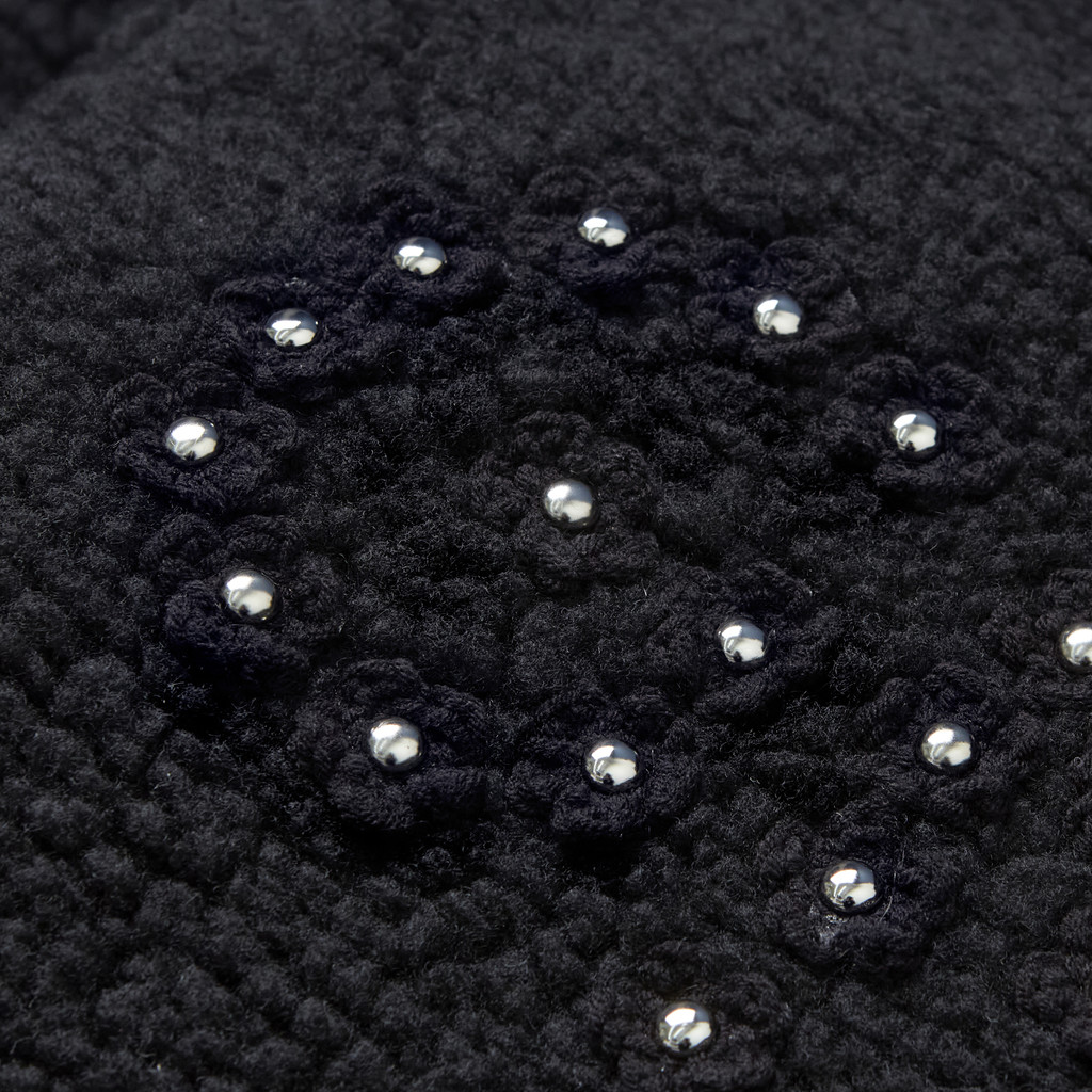 Flower Crochet Sherpa Jacket (BLACK)