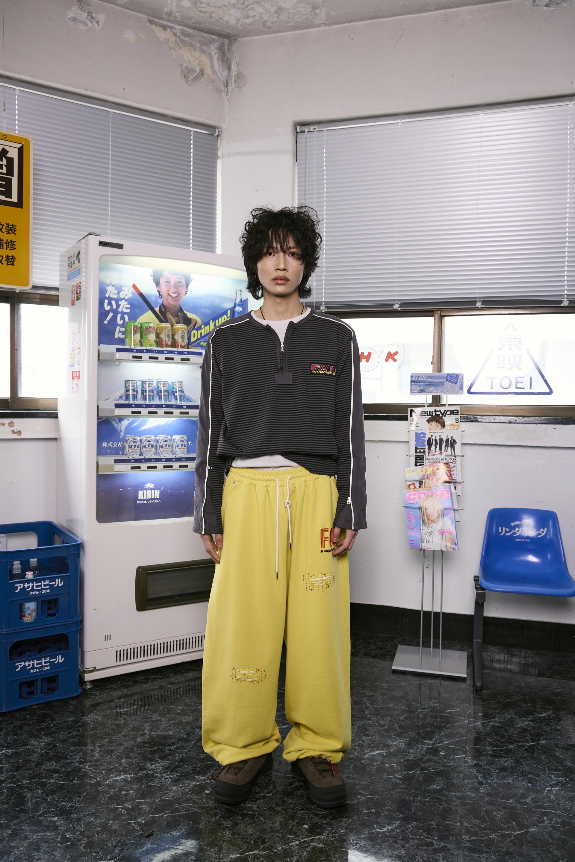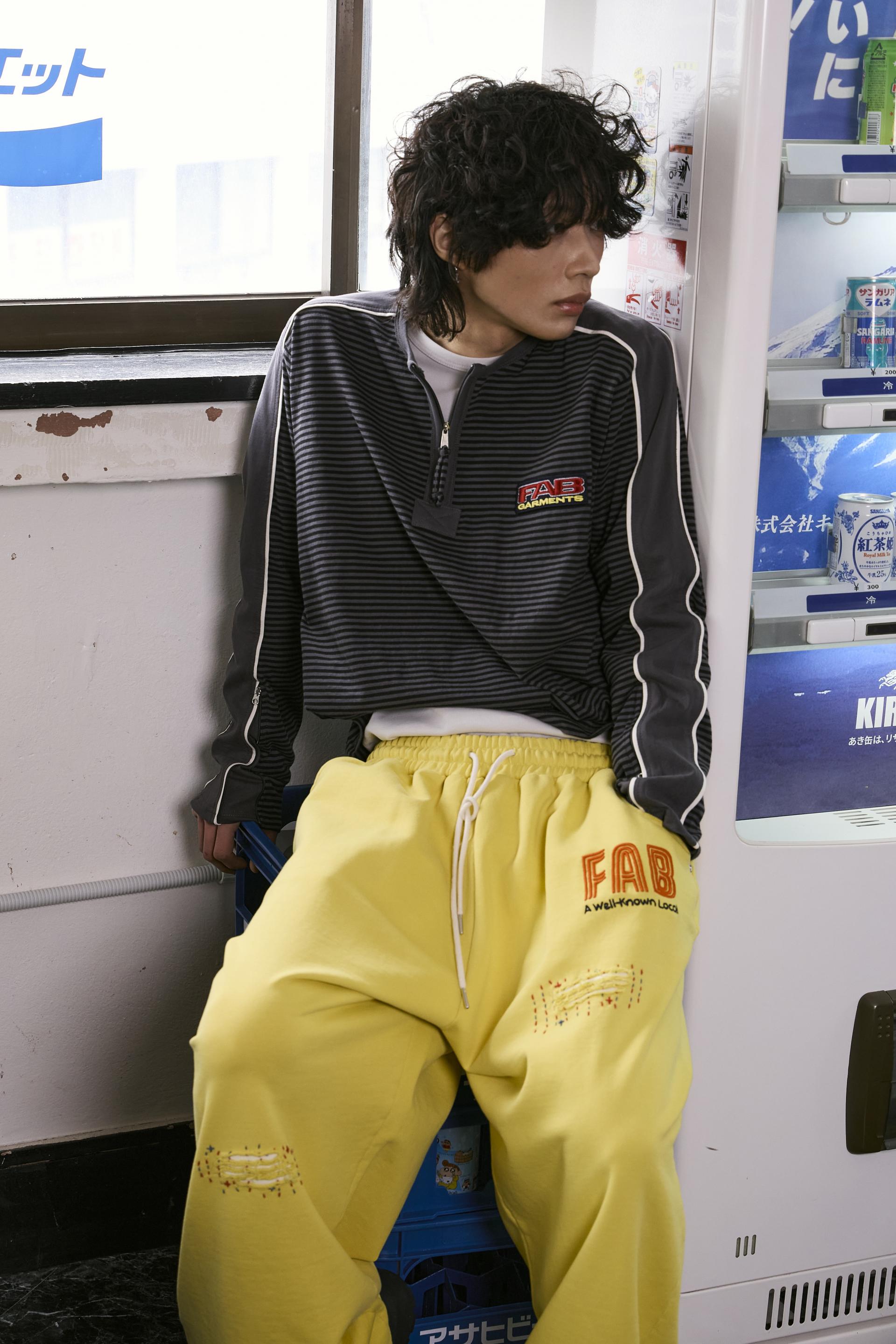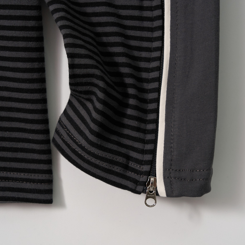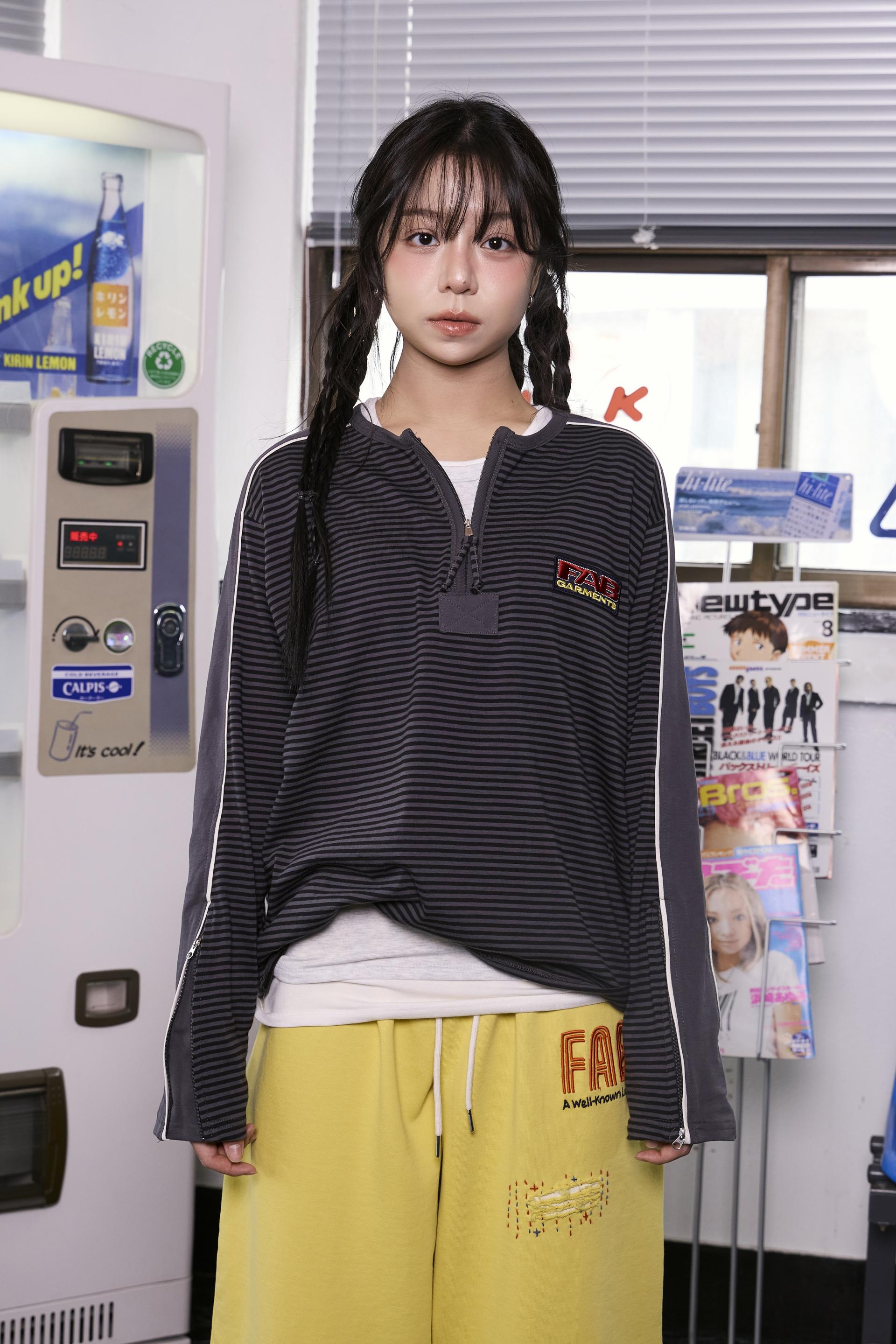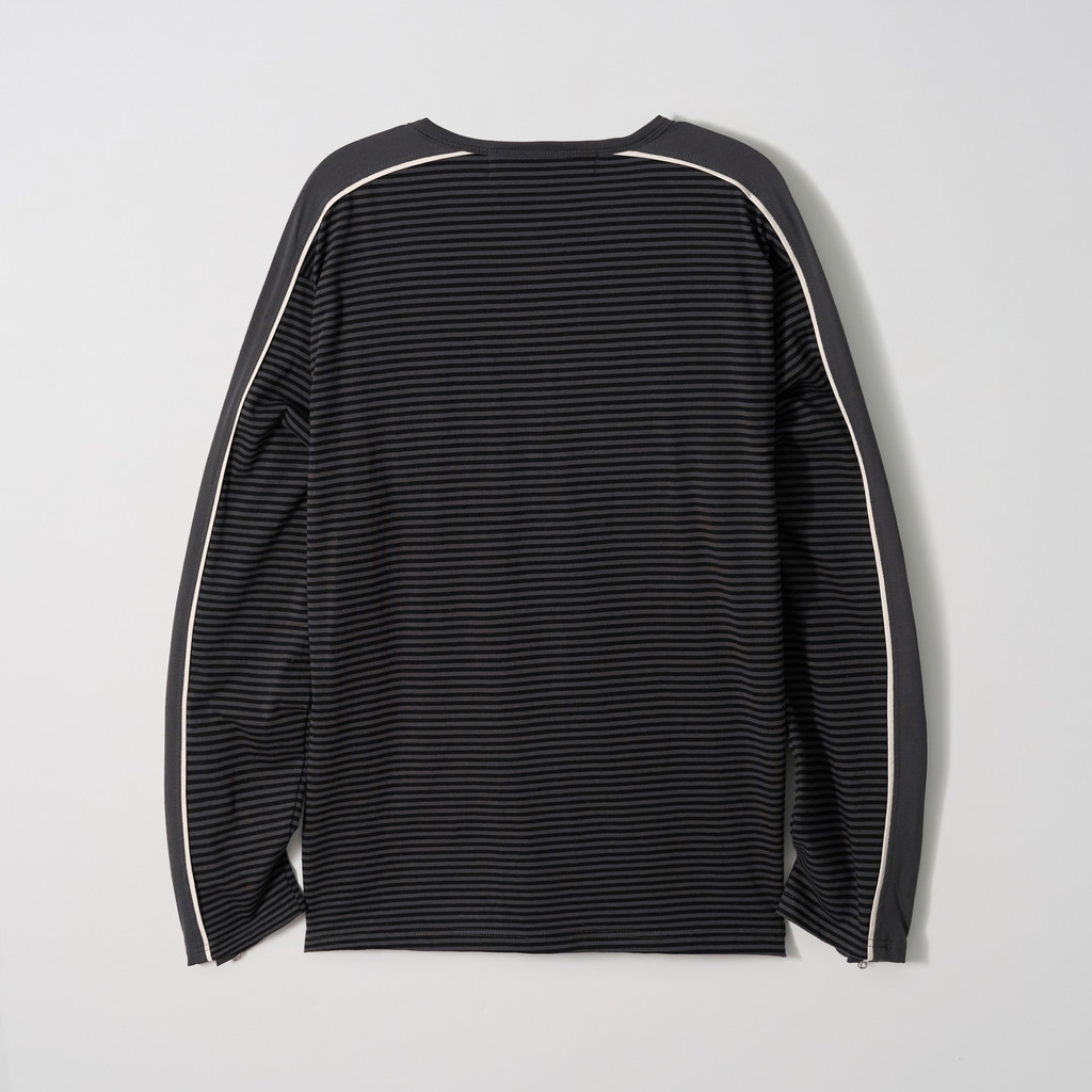 " 훈장달린 반-집업 줄무늬 긴팔 티셔츠 "