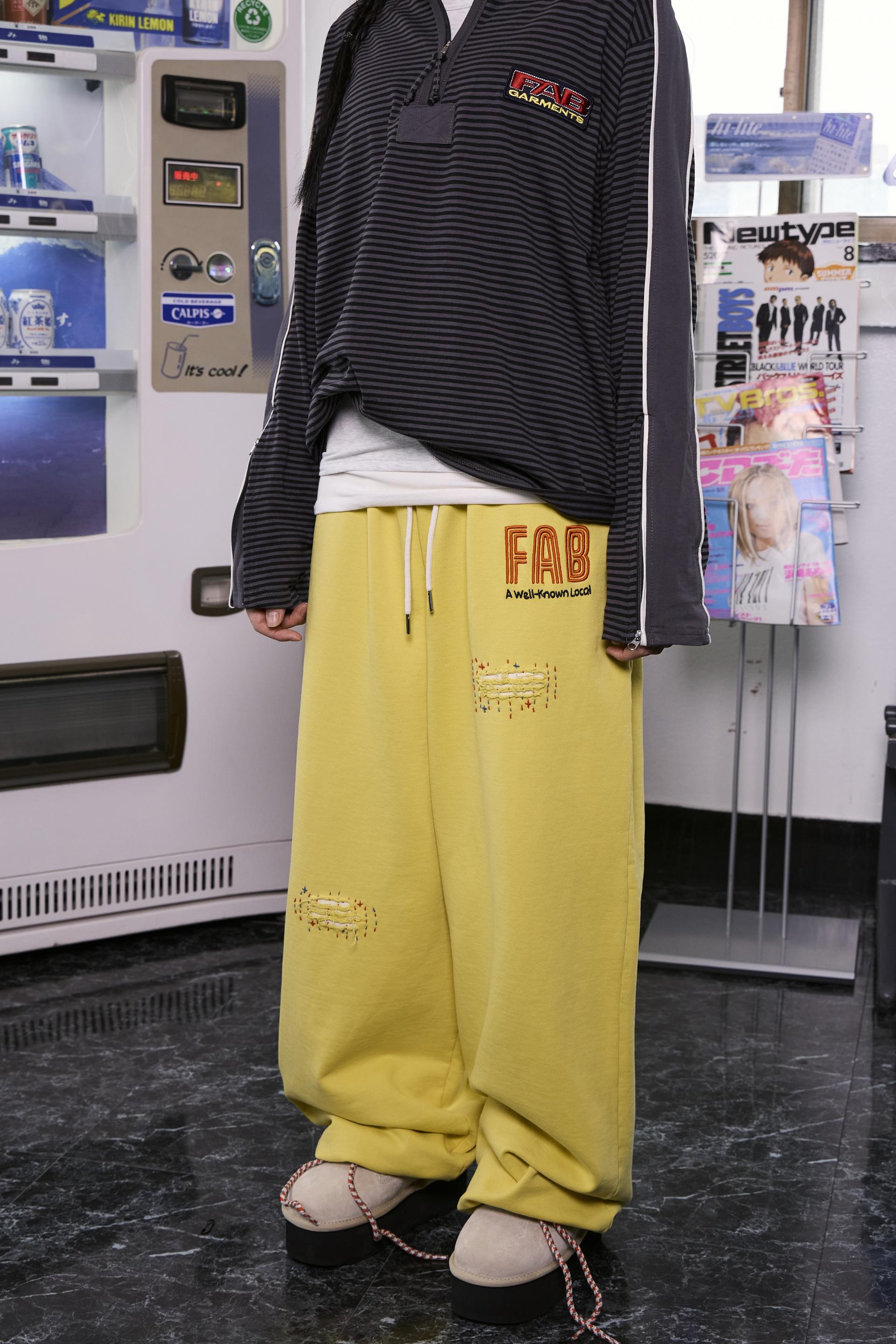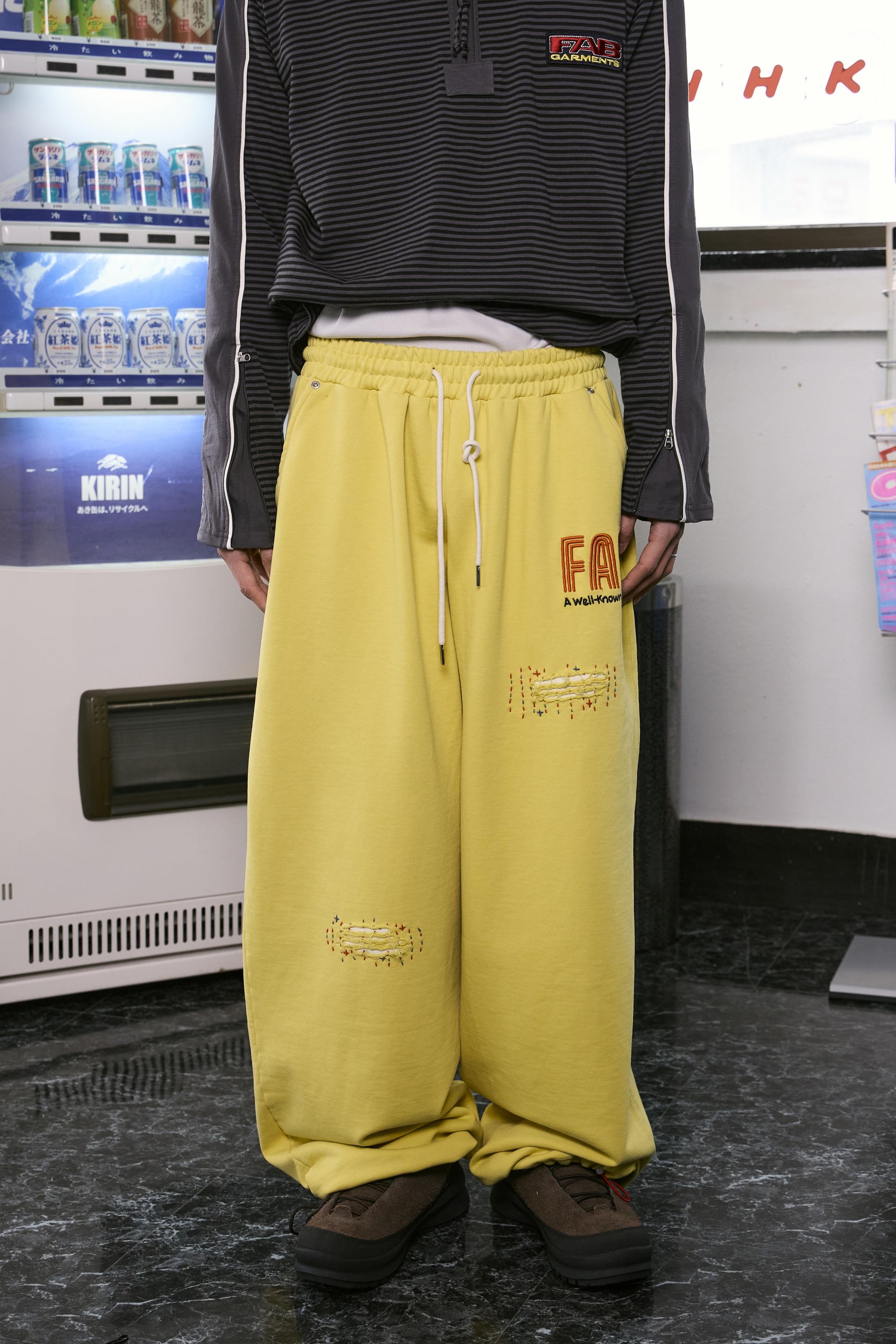 Washed Hand Stitch Sweatpants (YELLOW)